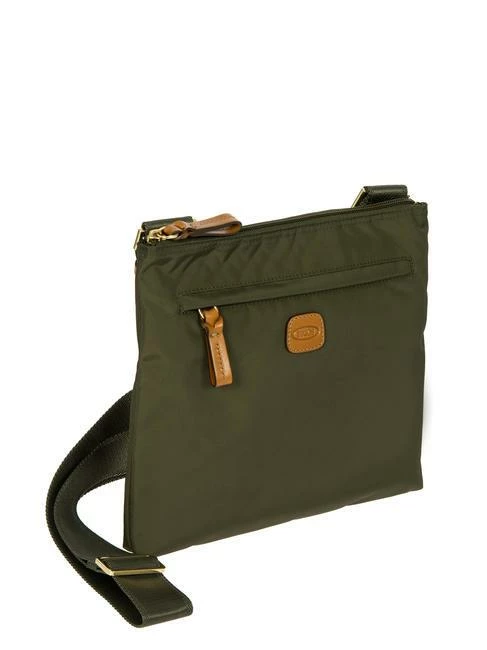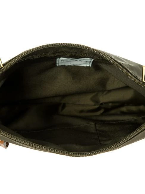 – Borsa piatta in nylon satinato con dettagli in pelle